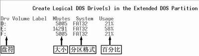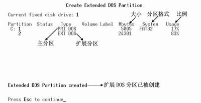 扩展分区建立完成后,会显示主分区和扩展分区的相关信息(图6)。