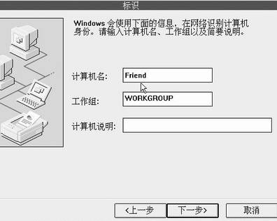 6.接下来我们就设置自己的标志。输入自己的计算机名、工作组及计算机说明信息(图7)。