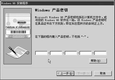 3.接下来稍等片刻,待系统进行安装检测及文件复制后,便可进行Windows 98的安装界面(图3)。