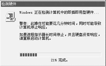 11.在检测及安装硬件过程(如图13)中可能会出现长时间进度条停止不前或者硬盘没有响应的情况(机箱上那个红色的硬盘指示灯熄灭不亮)。