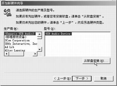 然后再在硬件类型中选择要安装驱动程序的硬件,进入下一步单击“从软盘安装”(图4)。