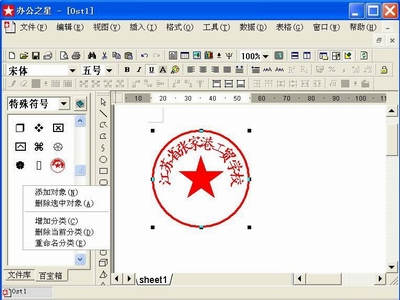 假如制作的印章没有什么问题,我们可以激活左侧的“百宝箱”,然后从右键菜单中执行“添加对象”命令,如图4所示,很快就可以将刚才制作的这款电子印章添加过来了。以后需要使用电子印章时,只要直接双击即可将它添加到公文中。