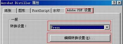 1)依照前述的步骤将Word文档打印成PDF格式。不过在此须注意的是,在“Acrobat Distiller属性”对话框的“Adobe PDF设置”选项中将转换设置选为Press(印刷机),再单击“编辑转换设置”。