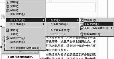 如图7所示,在图片上单击右键,执行弹出菜单中的“修改图片/图片/来自文件”命令,在弹出的窗口中选择合适的图片文件,点击“插入”按钮,图片就更换过来了,然后在图片下方输入有关文字就行了。和文字框的操作一样,你也可以改变图片的位置及大小。但这时又出现一个问题,如图8所示,图片与介绍文字的空间不成比例,文字部分太大,很不美观,但又不能单独调整,这是怎么回事呢?