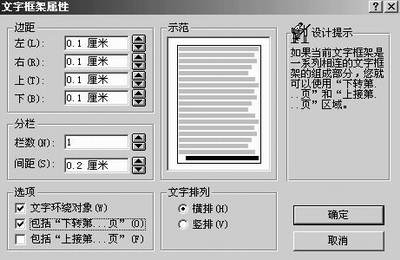 如果我在第二、三版分别插入两个文字框,在第二版中文字框里输入的内容大大超出这个文字框所能够容纳的范围。那该怎么办呢?你一定会说,当然继续在第三版那个文字框中输入了。不过我要是在前一个文字框中再增删文字呢?还得手工调整另一个文字框,实在麻烦!最好的办法是使用Publisher专门设计的流动功能。让前一个文字框内S余的内容自动地流入下一个文字框。
