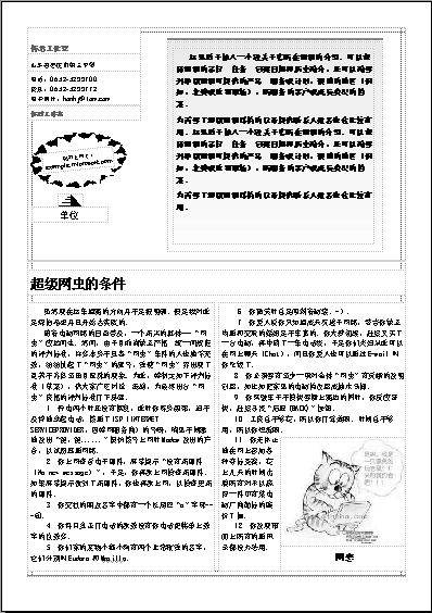 打开报纸的第一版,修改报纸的期数及发行日期,添加“特别兴趣点”及“本期内容”T在添加本期内容时,如果标题一行显示不完,那就通过拖动文字左边的方块,改变行宽,实现多行显示。