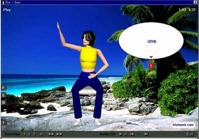 fit@work 3D可以帮助我们在工作之余跟着电脑中的虚拟人做一做简单的体操,舒展一下筋骨。安完软件后,在安装目录中找到“fit@work3D.exe”文件并运行。用鼠标右键点击系统托盘中的图标,从弹出菜单里选“Start Exercise now”项即可进入练习界面。