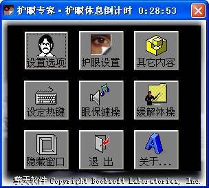 眼睛是心灵的窗口,它的重要性不言而喻。对于经常在电脑前工作的人们来说,保护眼睛更是重中之重。下面就跟我一起来看看《护眼专家》(http://www.boobsoft.com/eye.zip)是如何保护我们的视力的。