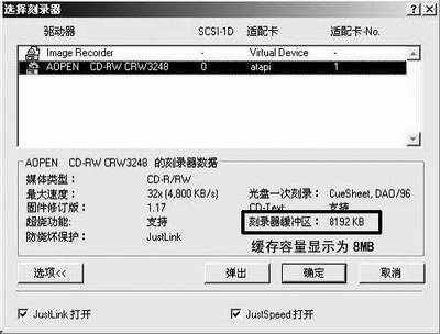 由于AOpen CRW3248刻录机本身就有2MB和8MB缓存的版本,笔者推断建碁可能对某些批次的刻录机产品通过Firmware来确定不同的缓存容量,以此来进行市场定位。如果读者有相同型号的刻录机,也可以试着更新一下Firmware,没准儿会有更多的惊喜等待着你!笔者的E-mail:tnt310@sohu.com, 欢迎读者同我交流使用经验。