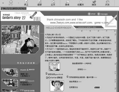 那个叫芳芳的女孩一定不知道,虫虫已经悄悄关注她的主页“芳芳物语”(http://fanfan99.com/home.htm)两年了。常常跑去看她的心情故事、买房子的奔波、对不同城市的观感、用相机记录下来的数码生活……在虫虫眼里,芳芳是一个身在异乡,努力奔小康的时尚女孩,她的主页活色生香,精彩纷呈。虫虫还很喜欢她那有浓浓生活情趣的、“不成规矩”的可爱漫画。正如芳芳自己所言:其实我并不会画画,没学过美术,可是这又有什么关系呢?只要自己喜欢的东西我就愿意去尝试……