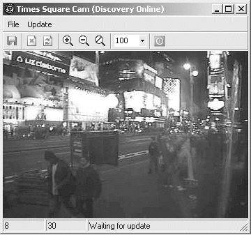 “LiveCams Planet”这个软件可以让你通过它饱览世界万象,数百个数码摄像机遍布各地,随时为你传达世界每一个角落的即时影像,包括纽约街道、巴黎铁塔、加拿大蒙特利尔的企鹅……在主界面的列表中双击你想要浏览的景点,此时会弹出一个浏览窗口。比如纽约一条大街的即时夜景(如图)每隔一段时间会自动更新一次,你可以对图片进行缩放,遇到喜欢的还可以执行“File→Save Picture”保存下来。