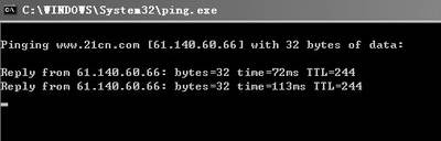 5.重启后,运行如ping www.21cn.com,如果显示如下图所示的文字,说明网络己畅通。