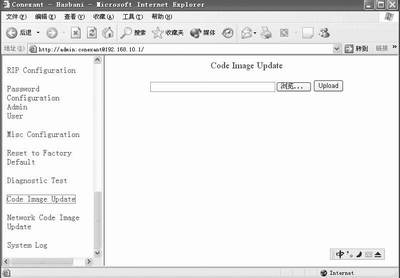 从左上角图标可以看出实达这款Modem采用的是Conexant芯片。先找到左边Admin Privilege下的Code Image Update,点击,咦,怎么打不开页面,出来一个“你无权查看此网页”的提示,连试几次都是如此。再次询问实达客户服务人员,原来要进行Admin Privilege下面的设置,需要超级密码,用户名和密码分别是:Admin和Conexant,输入超级密码,进入Code Image Update页面。