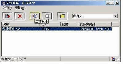 教师端:用Word将作文要求写入文件,保存文件名为“作文要求”。再点击Netmeeting面板上的“文件传送”将文件传送给“所有人”,如图5。
