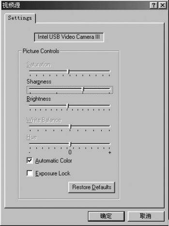 CS330买来时附带有一张驱动及应用软件的光盘,在Win98下安装后启动软件即可拍摄和录像照片。但用CS330拍摄一些电视节目时,效果总是不太理想,在画面上经常出现上下移动的水平干扰条纹,严重影响视觉效果。在软件的“视频源”选项里虽然有图像的“锐利度”、“亮度”和“白平衡”等项目的调节滑杆(图2),但是调节后干扰条纹始终无法消除。