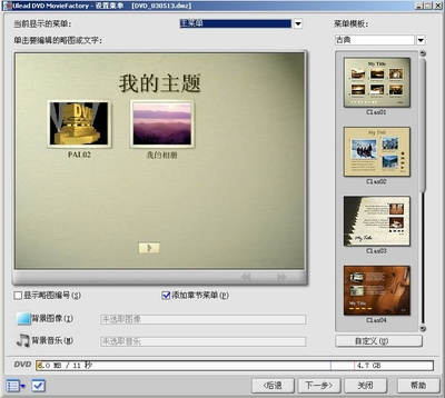 在使用这款软件的时候,我们会发现操作异常简单。如果我们要导出一段DVD视频,我们只要在主界面中选择输出光盘格式为DVD即可(图1),接下来的操作十分简单明了,同时还可以制作互动菜单(制作VCD的时候也可以),这样便可以把很多视频片断放在一张DVD里面(图2),很方便。但需要大家注意的是一定要看清容量,免得在最后一步刻光盘的时候不能继续,DVD制片家2在正式刻录之前每一步都能后退,可以随时修改。