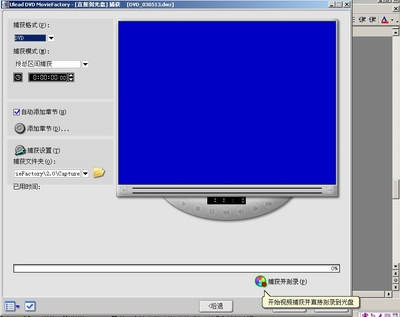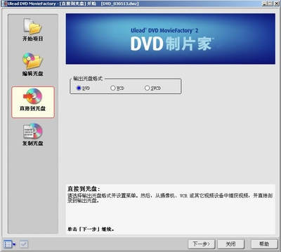 在主界面中,笔者还发现了一个很有意思的选项──直接到光盘(图3),据说它采用的是最新的“Disc-Direct”影碟刻录技术,捕获、刻录同时完成,无须事先在硬盘上保留MPEG文件,节省了大量硬盘空间和操作时间。在选择了输出光盘格式为DVD后,点击“下一步”便到了刻录的界面,当时以为是程序出错,联想到该选项的名字才大悟,原来DVD制片家2可支持从DV直接到DVD光盘。设置好了相关选项后,点击“下一步”后就可以准备刻录了(图4)。