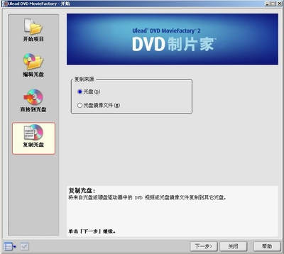 而且DVD制片家2还集成了一些刻录软件的功能,可以复制光盘(图5)。在复制光盘的这个附加功能上,它一点也不逊色于一些专业的刻录软件(图6)。特别是DVD制片家2可以支持最多99份的Copy,这个功能对一些家庭来说相当重要,他们可以利用这个功能轻松地制作出数张光盘分发给亲友,用以分享精彩的瞬间。
