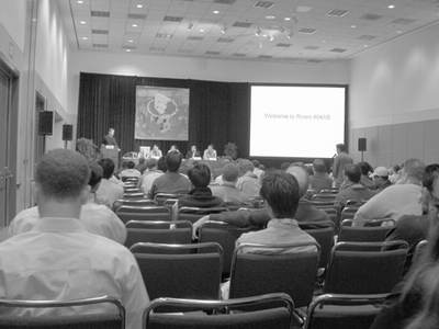 按照惯例,每一届E3都分成了两大部分──会议部分和展区部分。原本3天的展示会因为会议部分而又增加了一天,我们习惯性地将这多出的一天称为会议日。当然你也可以更加通俗地将它称为E3论坛。大部分厂商将在这个会议上开始自己的E3之旅。很多游戏公司的精英们将在会议日发表自己的一番见解与看法。但是这名义上的交流会却是一场不见硝烟的战争,例如三大游戏主机的交锋,在会议日这天就没有停止过。