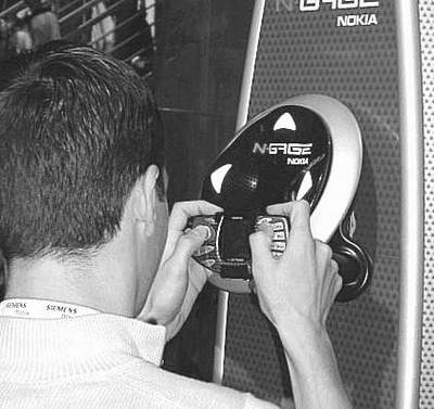 宣传已久的游戏手机N-Gage终于被NOKIA放到了展台上。这款已经在NOKIA系列中有过不少耳闻的机型的消息,刚刚传出就引起了一片哗然。游戏手机究竟会是什么样子,E3 2003算是让大家饱了眼福U这一届E3上发布的N-Gage并非最终机型,但是已经可以让大家见识到这款游戏手机的大致功能。目前N-Gage结合了GSM行动电话的数种娱乐功能,也为玩者提供了背光的彩色荧幕和表面的按钮,可以让玩家轻易地进行游戏,并支持蓝牙,让玩者在不需要通话费用的情况下与其他玩家连线对战。N-Gage还内建了MP3音乐播放和FM收音机的功能。
