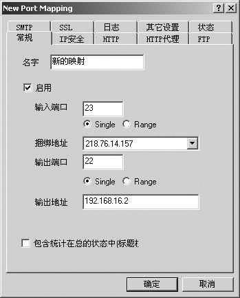 实现端口映射的方法有很多,一般都需要在局域网服务器上进行设置或安装运行一个端口映射软件。这里只介绍三种方法。为方便说明,假设局域网服务器的公网IP是218.1.1.1,要架设的FTP服务器已经安装好Serv-U,端口设置为22,在局域网内的IP是192.168.16.2,通过局域网服务器的23端口开通公网FTP服务。