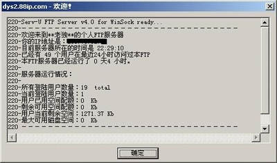 提示:申请域名后,FTP服务器的地址为:ftp://域名:端口,如上例中地址为:ftp://dys2.88ip.com:21。