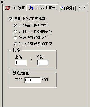 以“计数每个任务文件”为例,如果在“比率”选项中,“上传”设为1,“下载”设为4,则该账户每上传1个文件,就可以从FTP中下载4个文件。