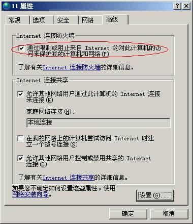 对于Windows XP系统,自带了“Internet连接防火墙”功能,与TCP/IP筛选功能相比,设置更方便,功能更强大。除了自带防火墙端口开放规则外,还可以自行增删。在控制面板中打开“网络连接”,右击拨号连接,进入“高级”选项卡(图22),选中“通过限制或阻止来自Internet的对此计算机的访问来保护我的计算机和网络”,启用它。系统默认状态下是关闭了FTP端口的,因而还要设置防火墙,打开所使用的FTP端口。点击右下角的“设置”按钮进入“高级设置”,选中“FTP服务器”,编辑它。由于FTP服务默认端口是21,因而除了IP地址一栏外,其余均不可更改。在IP地址一栏中填入服务器公网IP,确定后退出即可即时生效。如果架设的FTP服务器端口为其他端口,比如22,则可以在“服务”选项卡下方点“添加”,输入服务器名称和公网IP后,将外部端口号和内部端口号均填入22即可。