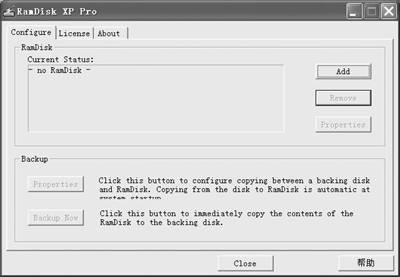 其实,Ramdisk XP虽然在关机前会丢失所有存储在虚拟磁盘中的数据,但我们只要激活其Backup功能,就可以及时将其中的数据备份下来了。从图2窗口中点击“Backup”小节中的“Properties”按钮,然后勾选“Enable Ramdisk backup”复选框就可以了。不过,要想流畅地使用Ramdisk XP,你的系统内存必须在128MB以上。