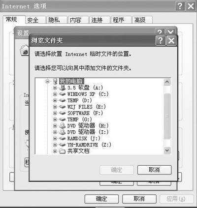 如果你经常上网,可以将Internet的临时文件也转换到虚拟磁盘中,这样浏览速度不是更快了吗?