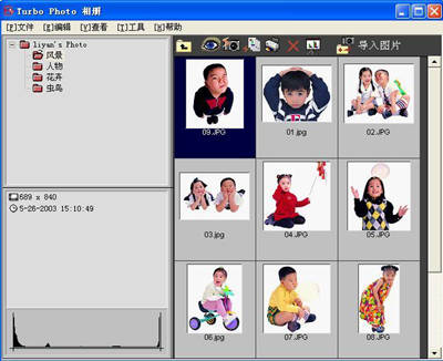 Turbo Photo很多效果只要你点一下鼠标就可以实现。你也可以通过向导、对比选择来完成,另外Turbo Photo对图片的管理也十分方便。