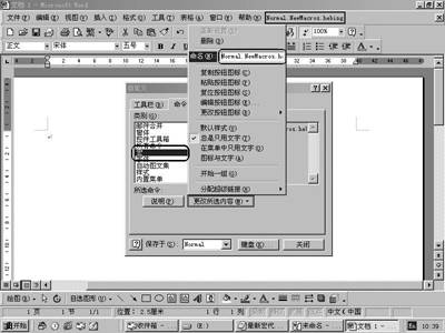 d.在你能够正常进行合并后,可以进入“工具→自定义→命令→类别”,再选择“宏”,然后拖动命令中的“hebing”宏到任意菜单栏或工具栏,再重新为宏命一个名字(见附图),以后点击这个按钮,就能进行多页Word文档的合并了。