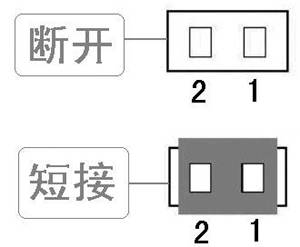 现在最常见的跳线主要有两种,一种是两根针,另一种是三根针。两针的跳线是最简单的,因为它的状态只有两种,即ON或OFF(图2),所以应用比较广泛。