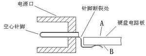 到这时,上述故障现象终于有了合理的解释:不易发觉的针脚断裂使该处始终处于虚接触状态,任何外力、振动、位置等状态变化都有可能使硬盘得不到正常供电或者在正常供电的情况下突然掉电,而硬盘电路中12V电压主要是供主轴电机使用,这意味着硬盘盘片将无法驱动或者随时都有可能在高速旋转的情况下突然停转,它所带来的灾难性后果可想而知!