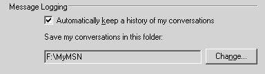 让它自动保存之前,你需要进行相应设置:在MSN Messenger主窗口中,单击“Tools→Options”打开选项设置窗口,然后进入“Message”选项卡,在“Message Logging”项目下勾选“Automatically keep a history of my conversation”复选框,单击“Change”按钮选择保存位置(图6),最后确定。