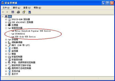 在WinXP系统的计算机上,当多个闪存被接入计算机时,你会发现你的系统中只有一个“可移动磁盘”!仔细寻找会发现第二个闪存变成了“本地磁盘”(图3),但是在系统的“设备管理器”里两个闪存能够被正确地识别出来(图4)。此外,还有不可思议的事情是,即便你只将第二个闪存(后安装的)单独插入计算机,它也还是被显示为“本地硬盘”!这虽然不影响设备的正常使用,但是也带来些许不便,你可以通过在桌面建立快捷方式并更换设备名称的方式加以解决。另外一种正确被系统识别的方式就是在你要将硬盘文件保存到闪存时,使用鼠标右键的“SEND TO...──保存到...”的功能,你看到的情况如图5,虽然在这里还是本地磁盘标志,但它是被当作移动磁盘使用的。
