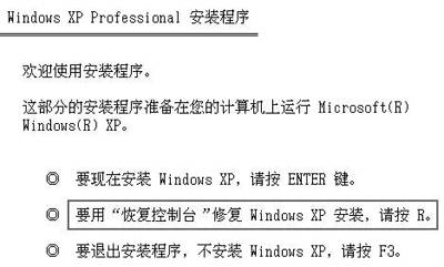在安装Windows XP的过程中,相信大家一定都见过如图1所示的提示界面,在这里我们看到的那个“恢复控制台”就是我们这里所说的故障恢复控制台。在安装完Windows XP后,如果还想使用光盘中的故障恢复控制台,我们可以这样操作:将Windows XP安装光盘放入光驱,通过光盘启动系统,在出现图1所示的界面后,按下键盘中的R键,接着在登录必要的文件之后就会出现故障恢复控制台窗口。