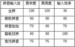 好了,以上几种就是目前最流行且实用的拼音输入法了,笔者根据初学者的需要,从使用的角度对它们作了一些参数对比,见表。
