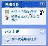 ②打开“网络连接”,在“网络任务”下,单击“创建一个新的连接”。