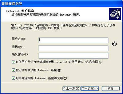 ⑧输入用户名和密码。单击“下一步”按钮。