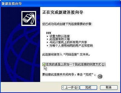 建立Internet连接后,在桌面上会添加一个“169”快捷图标。