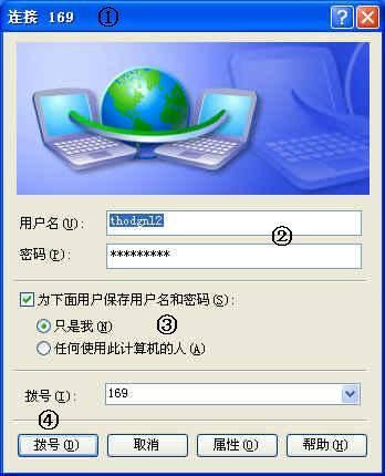 ①双击“169”快捷图标,打开“连接169”对话框。