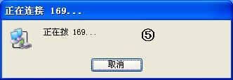 ⑤弹出“正在连接169”的信息框,显示连接情况。同时会听到Modem的叫声。