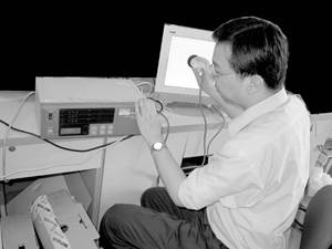 测试中,为了测出最准确的数据,我们把所有的测试样品的分辨率设定为最佳分辨率,测试之前会进行半个小时的预热。如本次我们测试的15英寸液晶显示器,就设定为1024×768的最佳分辨率,色深为16bit,刷新频率调节到最佳刷新分辨率(多为75Hz)。在显示器的色温调节方面,我们把所有的参测样品统一设置为9300K,因为该值是最适合亚洲人黑褐色眼球的。相对来说,6500K的白色色温则比较适合西方人的眼球,在我们亚洲人眼中,会显得偏红和黯淡一些。