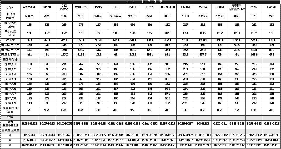 在国际单位制中,亮度的单位是每平方米流明度,也就是cd/m2。亮度是液晶显示器的一个重要指标,亮度值越大,画面显示的效果越分明,色彩越锐利。目前,液晶显示器的亮度普遍都在250cd/m2以上,在亮度技术方面的问题不大。在测试中,亮度值是在每款显示器的亮度和对比度值达到最大时,在中心取样后得到的结果。但是得到的亮度的测试结果可能与厂商标称的亮度存在较大的差距,这主要是由于测试方法不同造成的。厂商的测试结果是在窗口模式下得到的,此时屏幕大部分区域为黑色,测量屏幕中心白色立方块的亮度,因此造成了测试结果上的差异。不过,即使测试方法不同,但是最后得到的亮度值应该是很接近的。