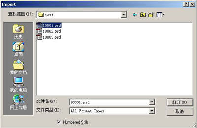 3.将PSD序列导入Premiere中。方法是:选择“File→Import→File”,选择你输出的PSD序列文件的第一个文件,然后选择Numbered Stills,(如图2所示)。勾选了该项之后所有图片序列就会作为一段完整的动画导入到Premiere中了。