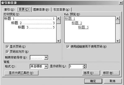 ②执行“插入→引用→索引和目录”命令,打开“索引和目录”对话框,切换到“目录”标签下(图1)。