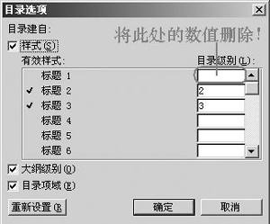 提示:①如果不想将某类(如文档总标题)已经设置了样式(如标题1)的段落提取到目录中,可以这样操作:在“索引和目录”对话框“目录”标签中,单击其中的“选项”按钮,打开“目录选项”对话框,将右侧“目录级别”中相应的数值删除,确定即可(图3)。②上述操作在Word 2000中同样有效,不过,在默认的情况下,在Word 2000中,只要直接点击相应的目录项,即可跳到正文的对应内容处;而在Word 2002中,需要按住Ctrl键,再点击相应的目录项,才能实现自动跳转。③执行“工具→选项”命令,打开“选项”对话框,切换到“编辑”标签下,清除“用Ctrl+单击跟踪超链接”选项前面复选框中的“√”号,确定退出。以后,在Word 2002中,也可以直接点击相应的目录项实现快速跳转了。