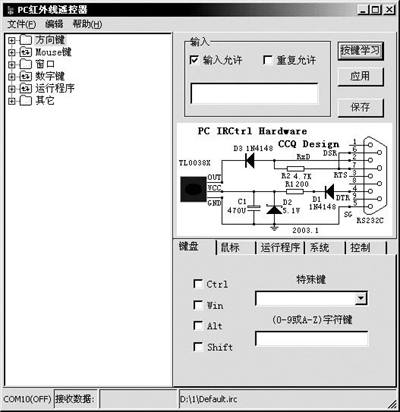 首先要选择你使用的COM口,单击“编辑→运行设置”,从这里选择一个COM口,如果是外置的,一般选择COM1,反之选择COM2,对于较早一些主板,COM1、COM2口都在机箱的后面板上,要根据实际的连接情况选择相应的COM口。在这里你还可以设置是否在开机时程序自动运行,一般我们要选中它,这样只要一开机,你就随时可以遥控。