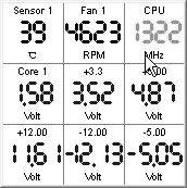 在“电压”选项中我们可以设置主板电压传感器型号,MBM5可以自动检测到,“电压适配器”中显示的就是主板的电压传感器型号。在报警设置中我们可以根据CPU的当前电压来设置标准值,比如Tualatin Celeron可以设置为1.475V,允许的误差范围5%,这样在实际使用中当CPU电压变化波动大于5%时,软件就会以报警或关机的方式来保护CPU和系统的安全。